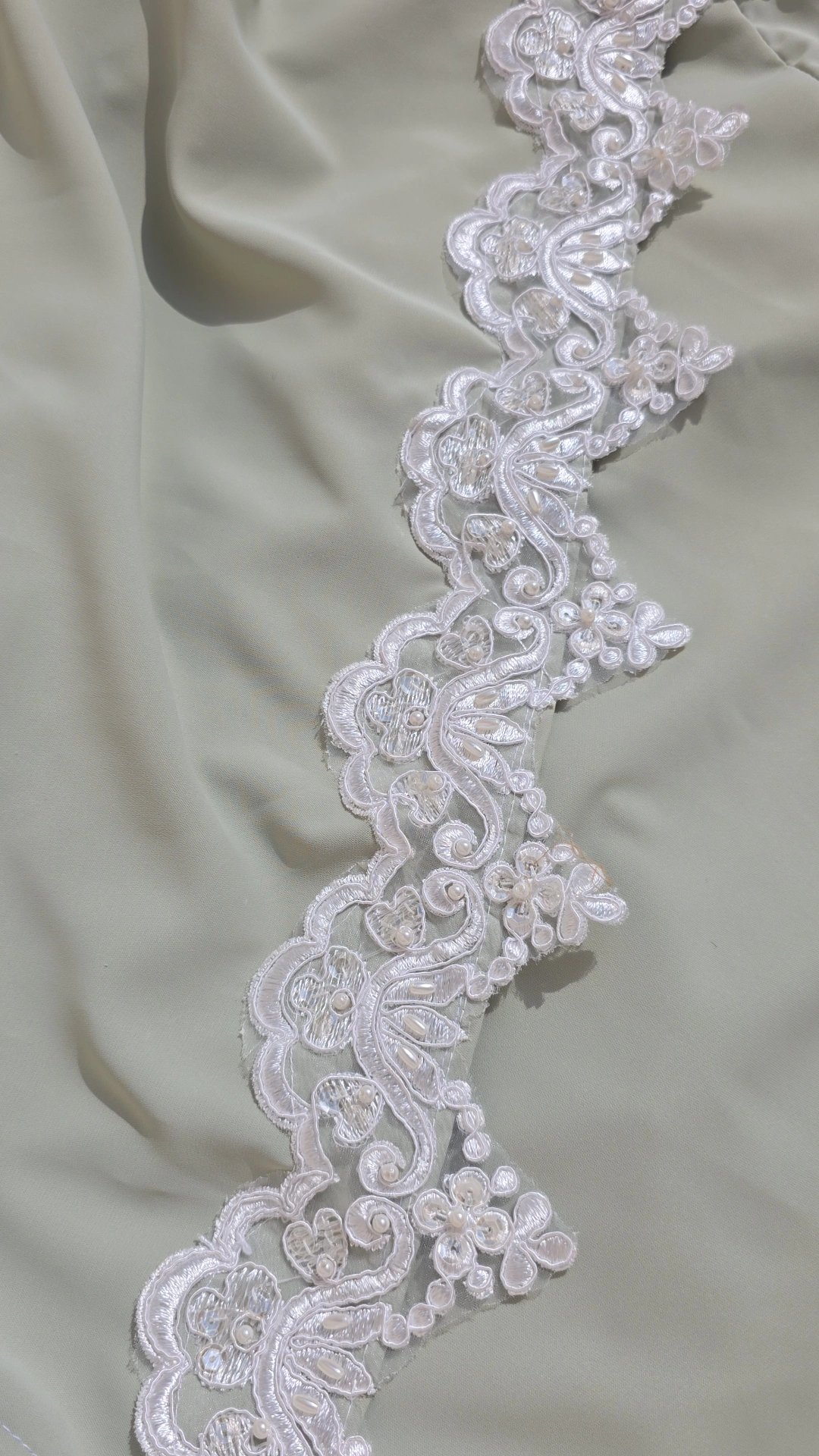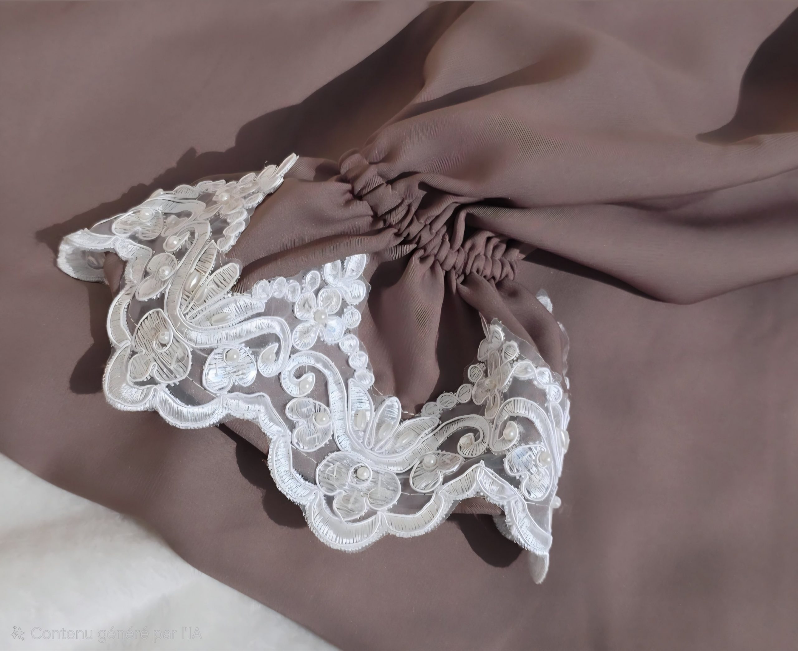 Si vous souhaitez aussi choisir le tapis assorti c’est possible, un joli tapis cousu mains avec la jolie dentelle perlée identique à celle de la tenue.