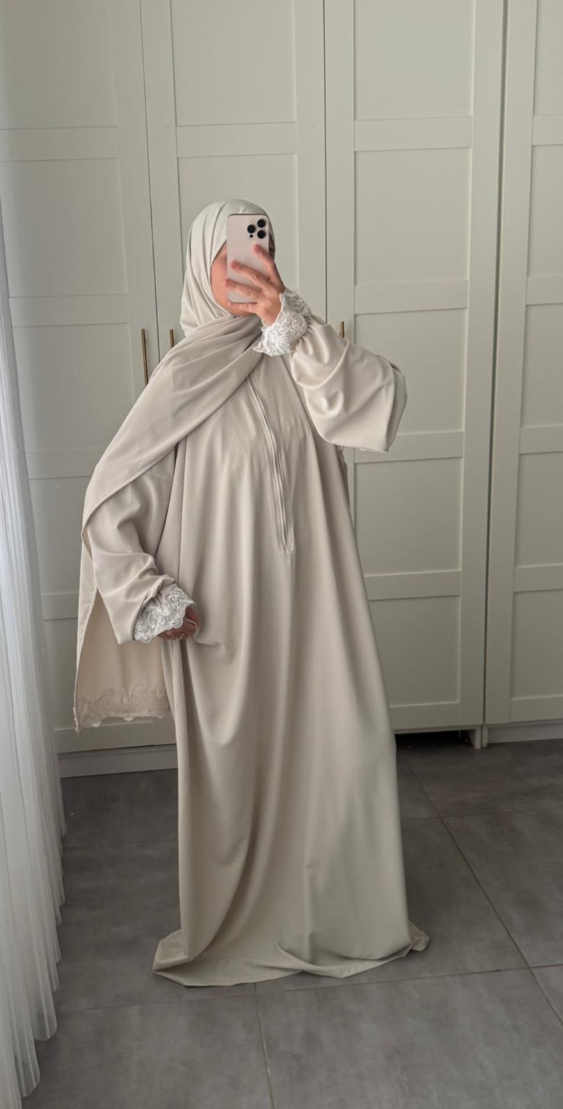 On m’a offert en cadeau le set Amirah (robe + tapis), et QUEL CADEAU ! Allahumma baarik, ce set est absolument magnifique, on se sent comme une princesse (c’est le cas de le dire) lorsqu’on se prépare à prier recouverte de ces perles et cette jolie dentelle. Cela fait 3 ans bientôt que je l’ai et ça n’a pas bougé Al-hamdu liLlah malgré les lavages, ce qui prouve la qualité des tissus utilisés. Charchafi c’est un sans faute pour moi Allahumma baarik 🥹🫶