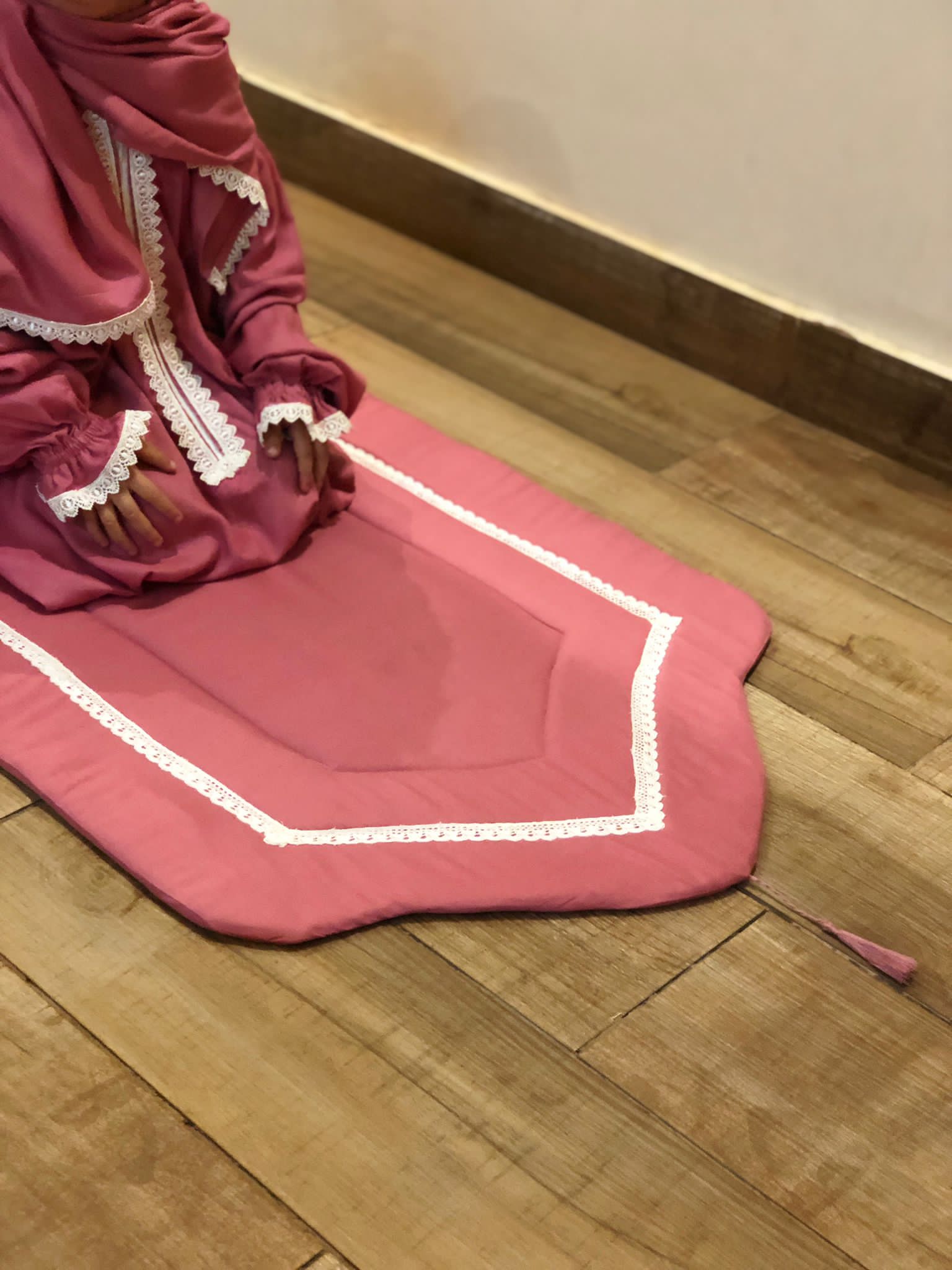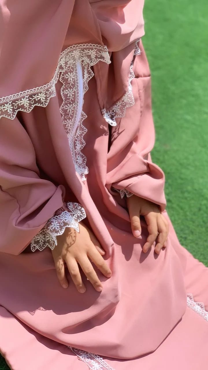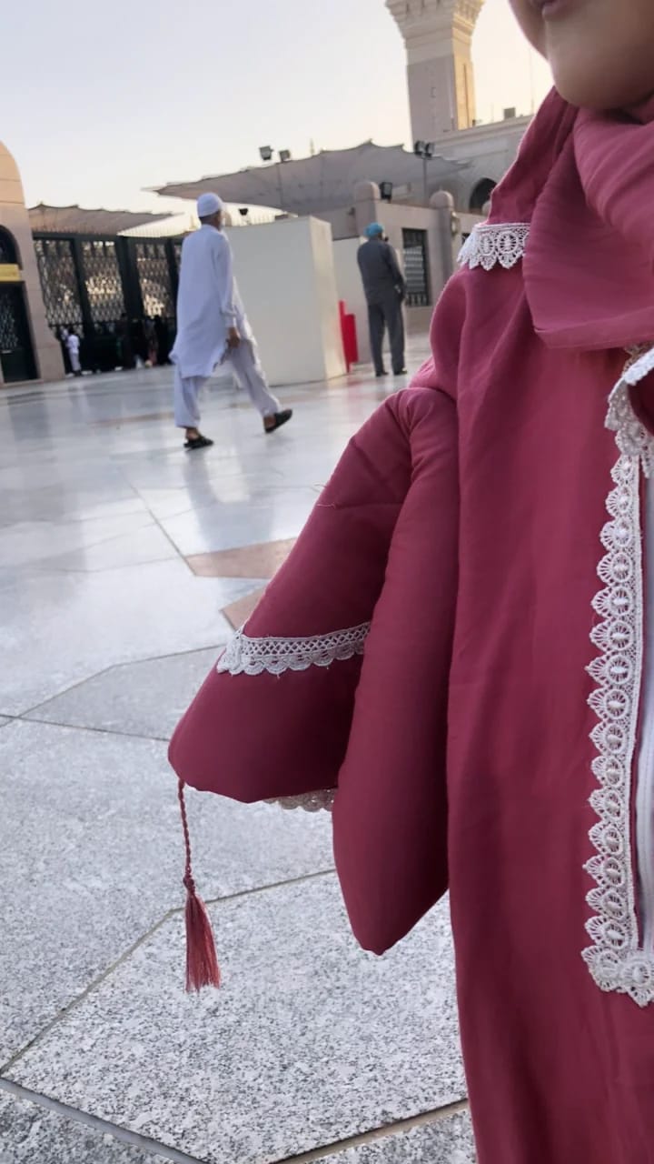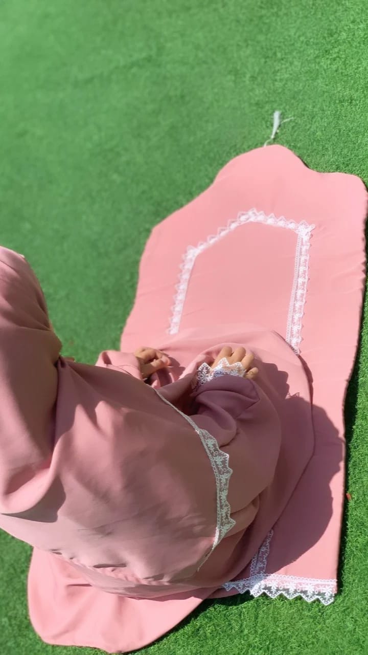 Joli ensemble de prière composé d’une tenue de prière ainsi que d’un tapis le tout cousu par une couturière à Médine. 🌸
